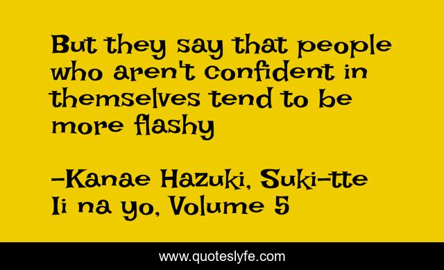 This page presents the quote "But they say that people who aren't confident in themselves tend to be more flashy". Author of this quote is Kanae Hazuki, Suki-tte Ii na yo, Volume 5. This quote is about love-yoursel, confidence, manga,.