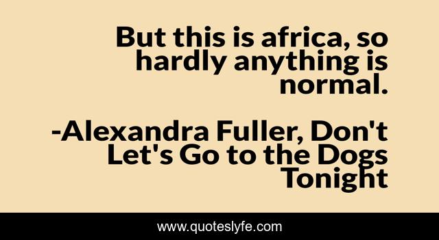 This page presents the quote "But this is africa, so hardly anything is normal.". Author of this quote is Alexandra Fuller, Don't Let's Go to the Dogs Tonight. .