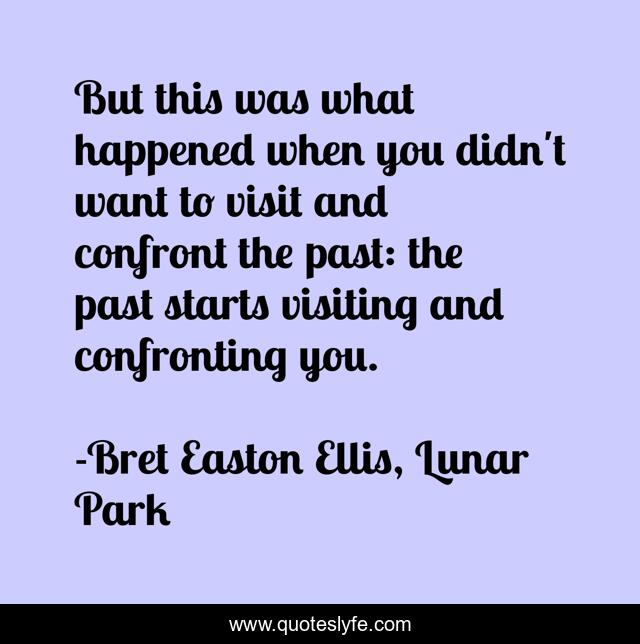 This page presents the quote "But this was what happened when you didn't want to visit and confront the past: the past starts visiting and confronting you.". Author of this quote is Bret Easton Ellis, Lunar Park. This quote is about past, confront, karma,.
