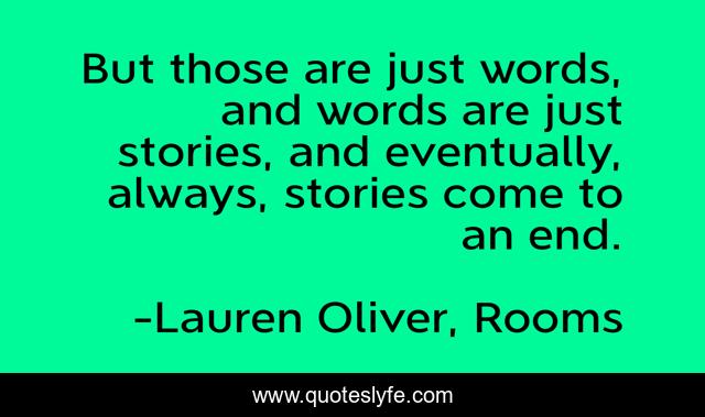 This page presents the quote "But those are just words, and words are just stories, and eventually, always, stories come to an end.". Author of this quote is Lauren Oliver, Rooms. .