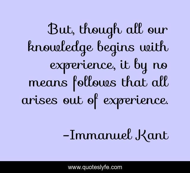 This page presents the quote "But, though all our knowledge begins with experience, it by no means follows that all arises out of experience.". Author of this quote is Immanuel Kant. This quote is about epistemology, knowledge, experience,.