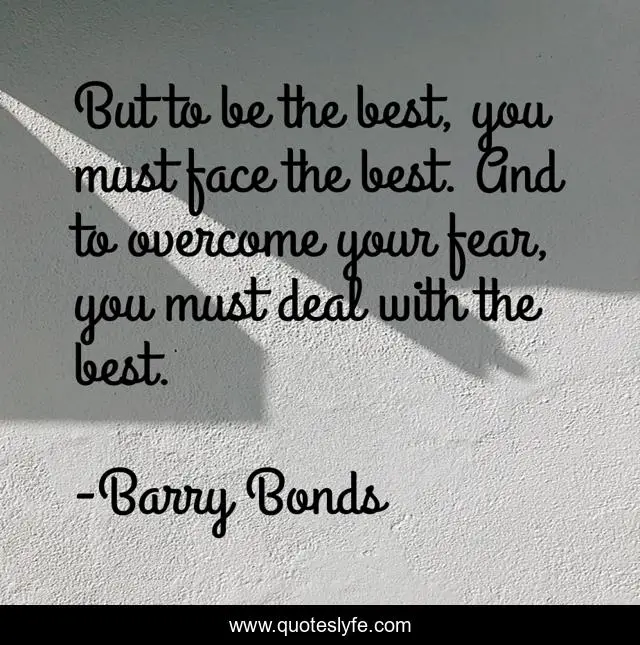 This page presents the quote "But to be the best, you must face the best. And to overcome your fear, you must deal with the best.". Author of this quote is Barry Bonds. This quote is about best, face,.