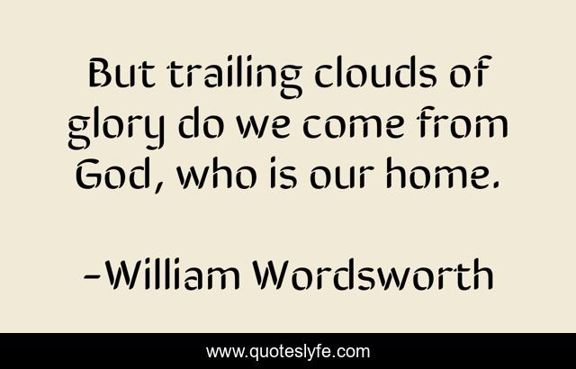 This page presents the quote "But trailing clouds of glory do we come from God, who is our home.". Author of this quote is William Wordsworth. .