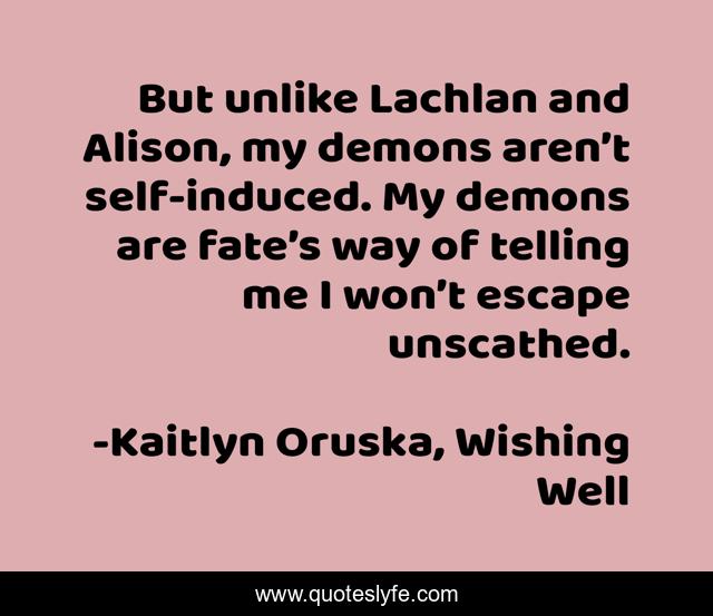 "Kaitlyn Oruska, Wishing Well Quotes." Quoteslyfe.com, 2025. Mon. 08 Dec. 2025. <https://www.quoteslyfe.com/quote/But-unlike-Lachlan-and-Alison-my-demons-160685>.