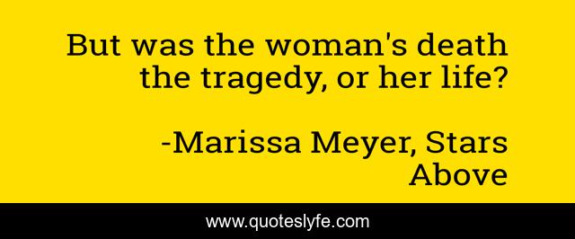 This page presents the quote "But was the woman's death the tragedy, or her life?". Author of this quote is Marissa Meyer, Stars Above. This quote is about winter, marissa-meyer, scarlet, cinder, cress, stars-above,.