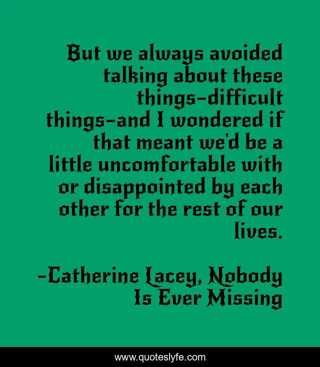 "Catherine Lacey, Nobody Is Ever Missing Quotes." Quoteslyfe.com, 2025. Sat. 06 Dec. 2025. <https://www.quoteslyfe.com/quote/But-we-always-avoided-talking-about-these-120169>.