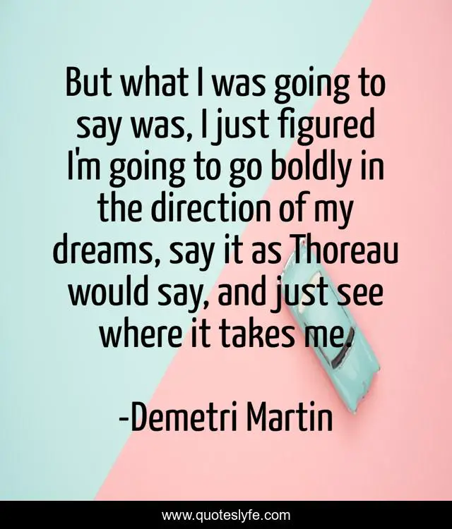 This page presents the quote "But what I was going to say was, I just figured I'm going to go boldly in the direction of my dreams, say it as Thoreau would say, and just see where it takes me.". Author of this quote is Demetri Martin. This quote is about me, direction, see,.