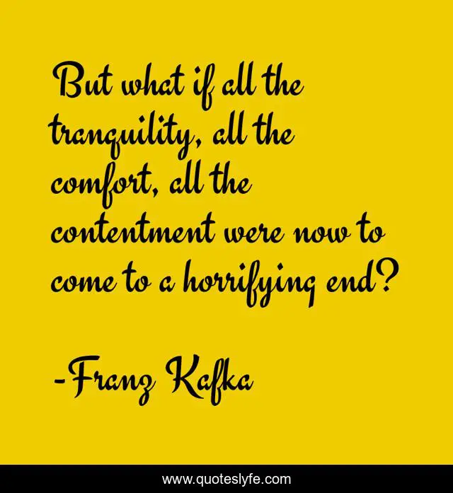 This page presents the quote "But what if all the tranquility, all the comfort, all the contentment were now to come to a horrifying end?". Author of this quote is Franz Kafka. This quote is about end, death, pain, kafka,.