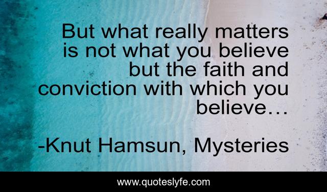 This page presents the quote "But what really matters is not what you believe but the faith and conviction with which you believe…". Author of this quote is Knut Hamsun, Mysteries. This quote is about faith, believing,.