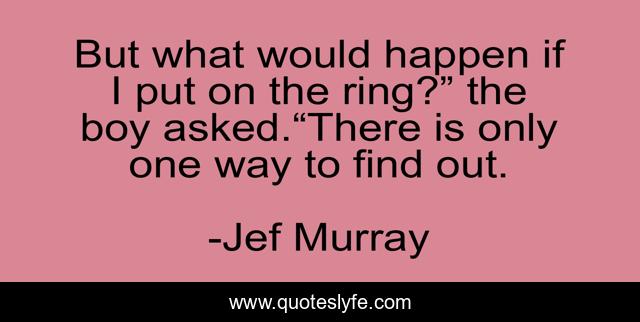 This page presents the quote "But what would happen if I put on the ring?” the boy asked.“There is only one way to find out.". Author of this quote is Jef Murray. This quote is about magic, oloris, adventure, unknown,.