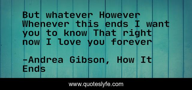 "Andrea Gibson, How It Ends Quotes." Quoteslyfe.com, 2025. Sat. 06 Dec. 2025. <https://www.quoteslyfe.com/quote/But-whatever-However-Whenever-this-ends-I-1036>.