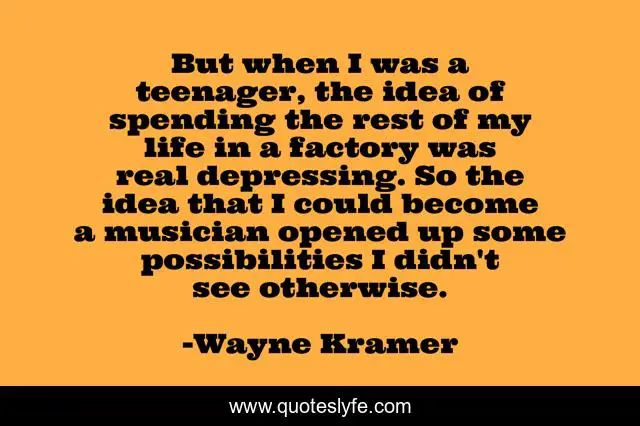 This page presents the quote "But when I was a teenager, the idea of spending the rest of my life in a factory was real depressing. So the idea that I could become a musician opened up some possibilities I didn't see otherwise.". Author of this quote is Wayne Kramer. This quote is about life, my life, rest,.