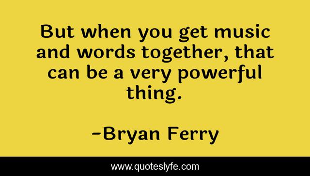 This page presents the quote "But when you get music and words together, that can be a very powerful thing.". Author of this quote is Bryan Ferry. This quote is about powerful, together, words,.