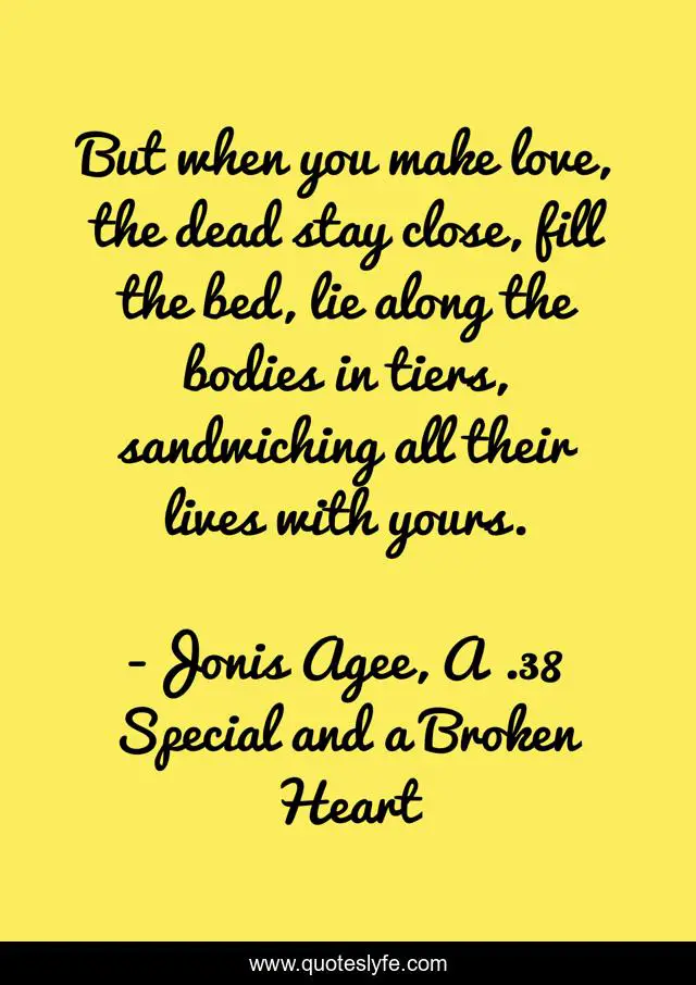 "Jonis Agee, A .38 Special and a Broken Heart Quotes." Quoteslyfe.com, 2025. Fri. 05 Dec. 2025. <https://www.quoteslyfe.com/quote/But-when-you-make-love-the-dead-226554>.