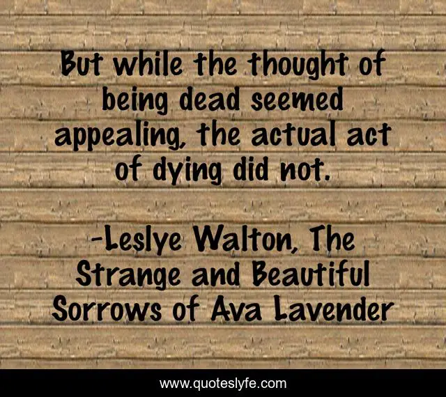 "Leslye Walton, The Strange and Beautiful Sorrows of Ava Lavender Quotes." Quoteslyfe.com, 2025. Fri. 05 Dec. 2025. <https://www.quoteslyfe.com/quote/But-while-the-thought-of-being-dead-223043>.