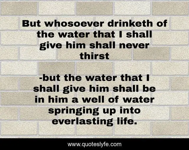 "but the water that I shall give him shall be in him a well of water springing up into everlasting life. Quotes." Quoteslyfe.com, 2025. Fri. 05 Dec. 2025. <https://www.quoteslyfe.com/quote/But-whosoever-drinketh-of-the-water-that-67206>.