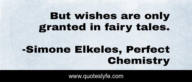 This page presents the quote "But wishes are only granted in fairy tales.". Author of this quote is Simone Elkeles, Perfect Chemistry. This quote is about alex-fuentes, bhie, perfect-chemistry, simon-elkeles, fiction, wishes, fairy-tales, young-adult, on-fiction,.