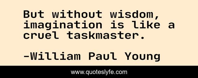 This page presents the quote "But without wisdom, imagination is like a cruel taskmaster.". Author of this quote is William Paul Young. This quote is about jesus, religion, the-shack, inspirational, enthusiasm,.