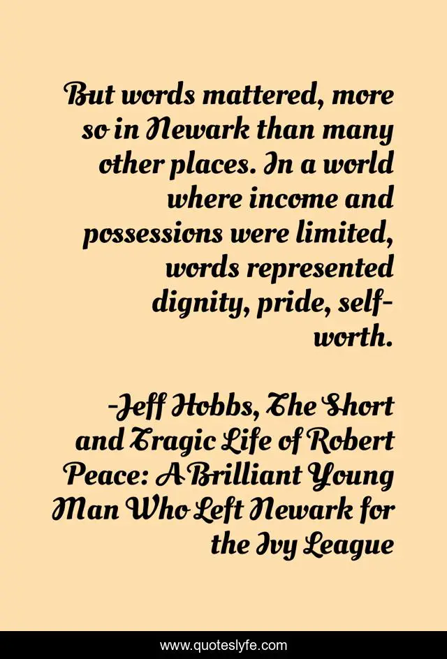 "Jeff Hobbs, The Short and Tragic Life of Robert Peace: A Brilliant Young Man Who Left Newark for the Ivy League Quotes." Quoteslyfe.com, 2025. Fri. 05 Dec. 2025. <https://www.quoteslyfe.com/quote/But-words-mattered-more-so-in-Newark-113046>.
