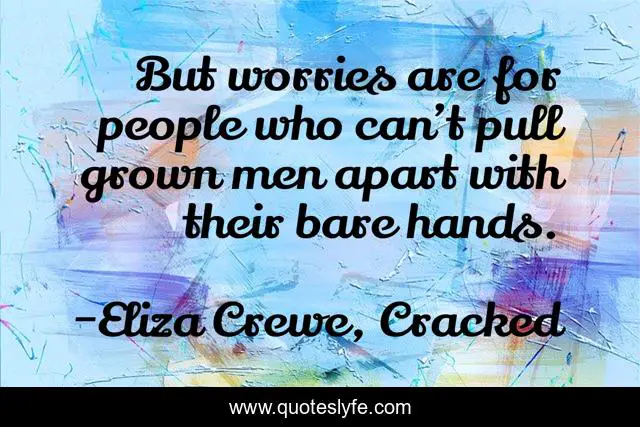 This page presents the quote "But worries are for people who can’t pull grown men apart with their bare hands.". Author of this quote is Eliza Crewe, Cracked. This quote is about paranormal-romance, demons,.
