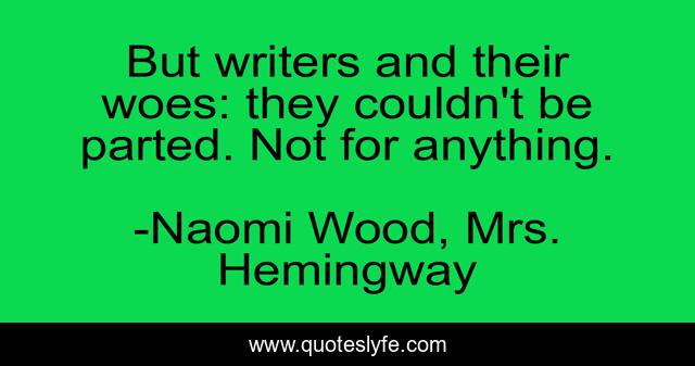 This page presents the quote "But writers and their woes: they couldn't be parted. Not for anything.". Author of this quote is Naomi Wood, Mrs. Hemingway. This quote is about authors, hemingway, writers, woes, writing,.
