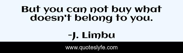 This page presents the quote "But you can not buy what doesn't belong to you.". Author of this quote is J. Limbu. This quote is about life, human, truth, reality,.