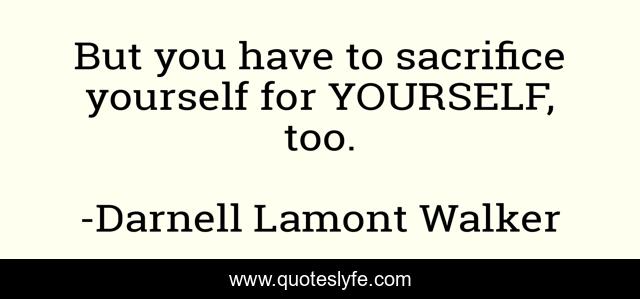 This page presents the quote "But you have to sacrifice yourself for YOURSELF, too.". Author of this quote is Darnell Lamont Walker. This quote is about sacrifice-in-life, sacrifice, martyr,.