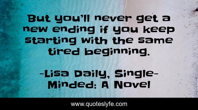 This page presents the quote "But you’ll never get a new ending if you keep starting with the same tired beginning.". Author of this quote is Lisa Daily, Single-Minded: A Novel. .