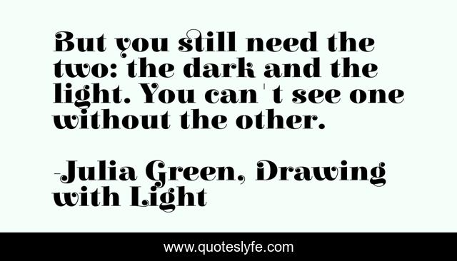 This page presents the quote "But you still need the two: the dark and the light. You can't see one without the other.". Author of this quote is Julia Green, Drawing with Light. This quote is about dark, light, life, love, affection,.