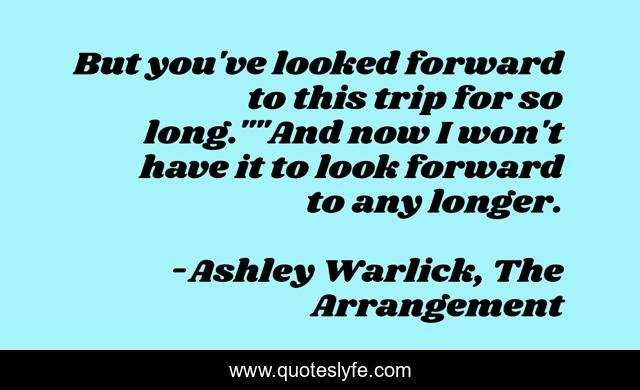 This page presents the quote "But you've looked forward to this trip for so long.""And now I won't have it to look forward to any longer.". Author of this quote is Ashley Warlick, The Arrangement. This quote is about 2015, aging, travel, 1936, disappointment,.