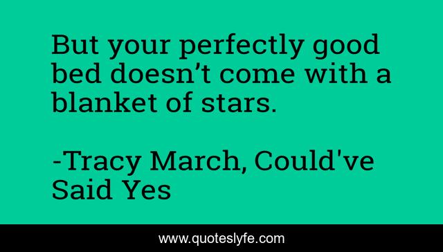 "Tracy March, Could've Said Yes Quotes." Quoteslyfe.com, 2025. Sat. 06 Dec. 2025. <https://www.quoteslyfe.com/quote/But-your-perfectly-good-bed-doesn-t-154761>.