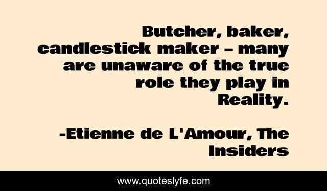 "Etienne de L'Amour, The Insiders Quotes." Quoteslyfe.com, 2025. Fri. 05 Dec. 2025. <https://www.quoteslyfe.com/quote/Butcher-baker-candlestick-maker-many-are-unaware-155864>.