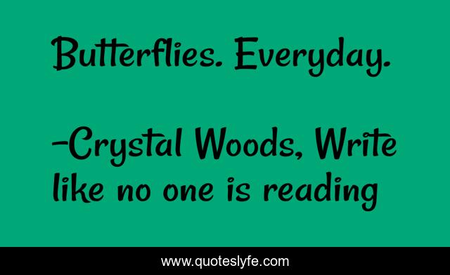"Crystal Woods, Write like no one is reading Quotes." Quoteslyfe.com, 2025. Mon. 08 Dec. 2025. <https://www.quoteslyfe.com/quote/Butterflies-Everyday-218421>.