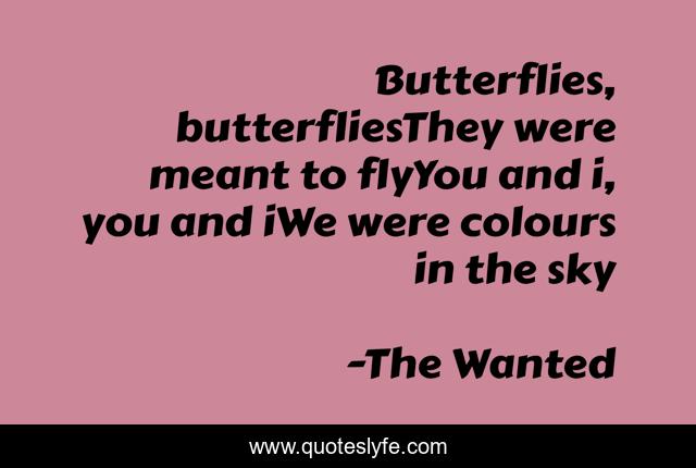 This page presents the quote "Butterflies, butterfliesThey were meant to flyYou and i, you and iWe were colours in the sky". Author of this quote is The Wanted. .