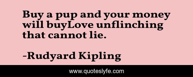 This page presents the quote "Buy a pup and your money will buyLove unflinching that cannot lie.". Author of this quote is Rudyard Kipling. This quote is about enthusiasm, inspirational,.