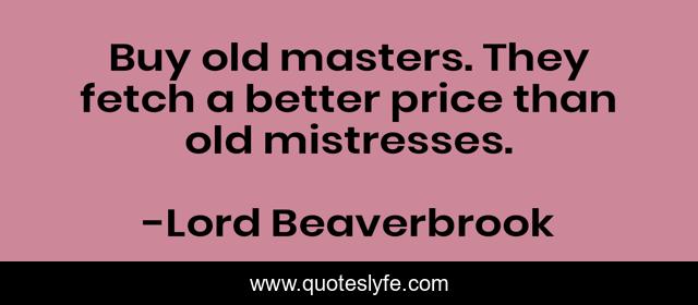 This page presents the quote "Buy old masters. They fetch a better price than old mistresses.". Author of this quote is Lord Beaverbrook. This quote is about painters, painting,.