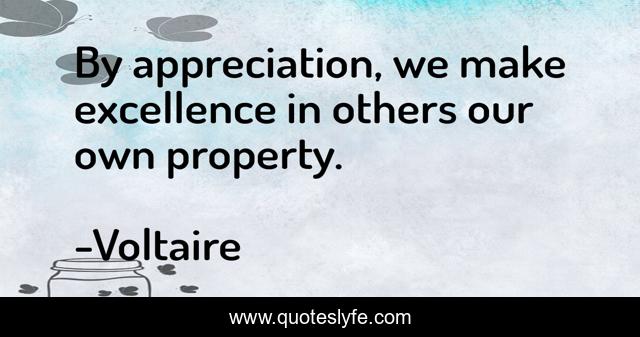 This page presents the quote "By appreciation, we make excellence in others our own property.". Author of this quote is Voltaire. .