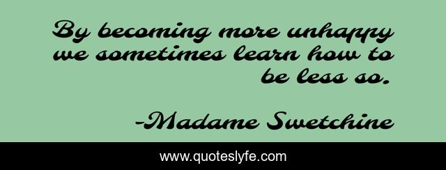 This page presents the quote "By becoming more unhappy we sometimes learn how to be less so.". Author of this quote is Madame Swetchine. .