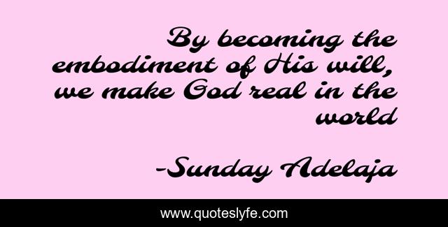 This page presents the quote "By becoming the embodiment of His will, we make God real in the world". Author of this quote is Sunday Adelaja. This quote is about god-s-will, world,.
