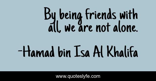 This page presents the quote "By being friends with all, we are not alone.". Author of this quote is Hamad bin Isa Al Khalifa. This quote is about being, friends,.