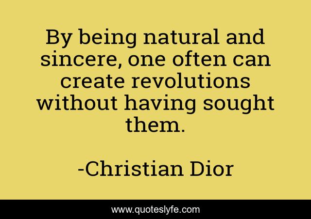 This page presents the quote "By being natural and sincere, one often can create revolutions without having sought them.". Author of this quote is Christian Dior. This quote is about revolution, natural, creation, sincerity, art, expression,.