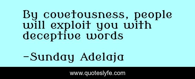This page presents the quote "By covetousness, people will exploit you with deceptive words". Author of this quote is Sunday Adelaja. This quote is about exploit, covetousness, deceptive, deceptive-words, people,.
