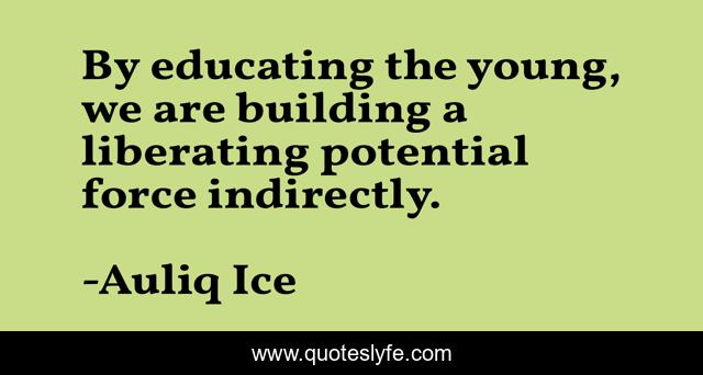 This page presents the quote "By educating the young, we are building a liberating potential force indirectly.". Author of this quote is Auliq Ice. This quote is about educational-philosophy, education-reform, liberation-of-mankind, liberation, education, auliq-ice,.