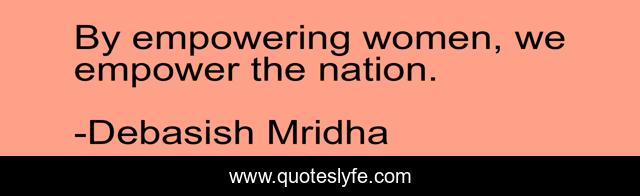 This page presents the quote "By empowering women, we empower the nation.". Author of this quote is Debasish Mridha. This quote is about philosophy, empowering-women, mridha, debasish, debasish-mridha, empower-the-nation,.