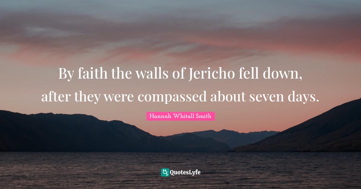 This page presents the quote "By faith the walls of Jericho fell down, after they were compassed about seven days.". Author of this quote is Hannah Whitall Smith. This quote is about faith, seven, seven days, jericho, wall,.