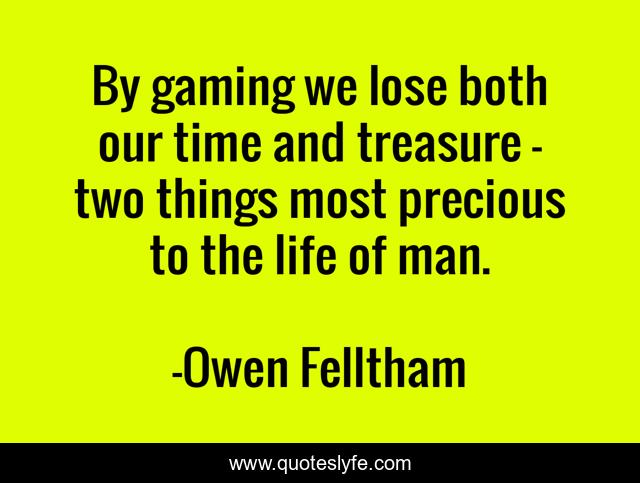 This page presents the quote "By gaming we lose both our time and treasure - two things most precious to the life of man.". Author of this quote is Owen Felltham. .