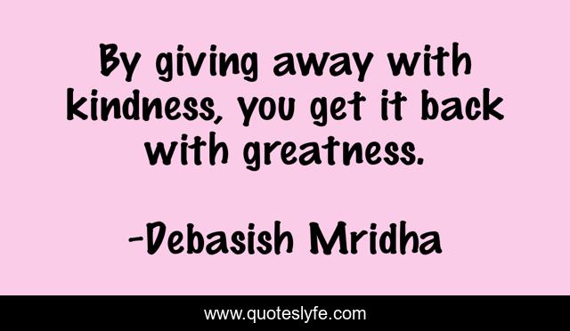 "Debasish Mridha Quotes." Quoteslyfe.com, 2025. Mon. 08 Dec. 2025. <https://www.quoteslyfe.com/quote/By-giving-away-with-kindness-you-get-136584>.