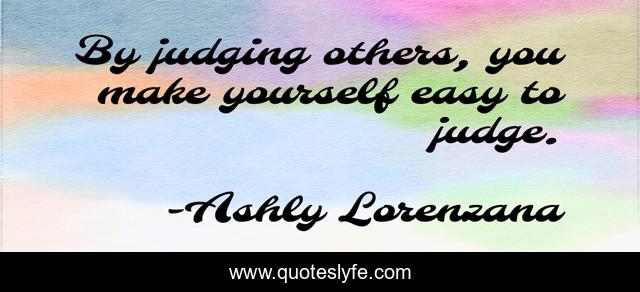 This page presents the quote "By judging others, you make yourself easy to judge.". Author of this quote is Ashly Lorenzana. This quote is about judgement, character, people,.