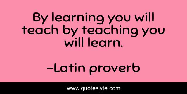 This page presents the quote "By learning you will teach by teaching you will learn.". Author of this quote is Latin proverb. .