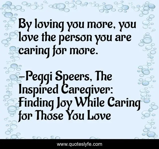 "Peggi Speers, The Inspired Caregiver: Finding Joy While Caring for Those You Love Quotes." Quoteslyfe.com, 2025. Tue. 09 Dec. 2025. <https://www.quoteslyfe.com/quote/By-loving-you-more-you-love-the-243929>.